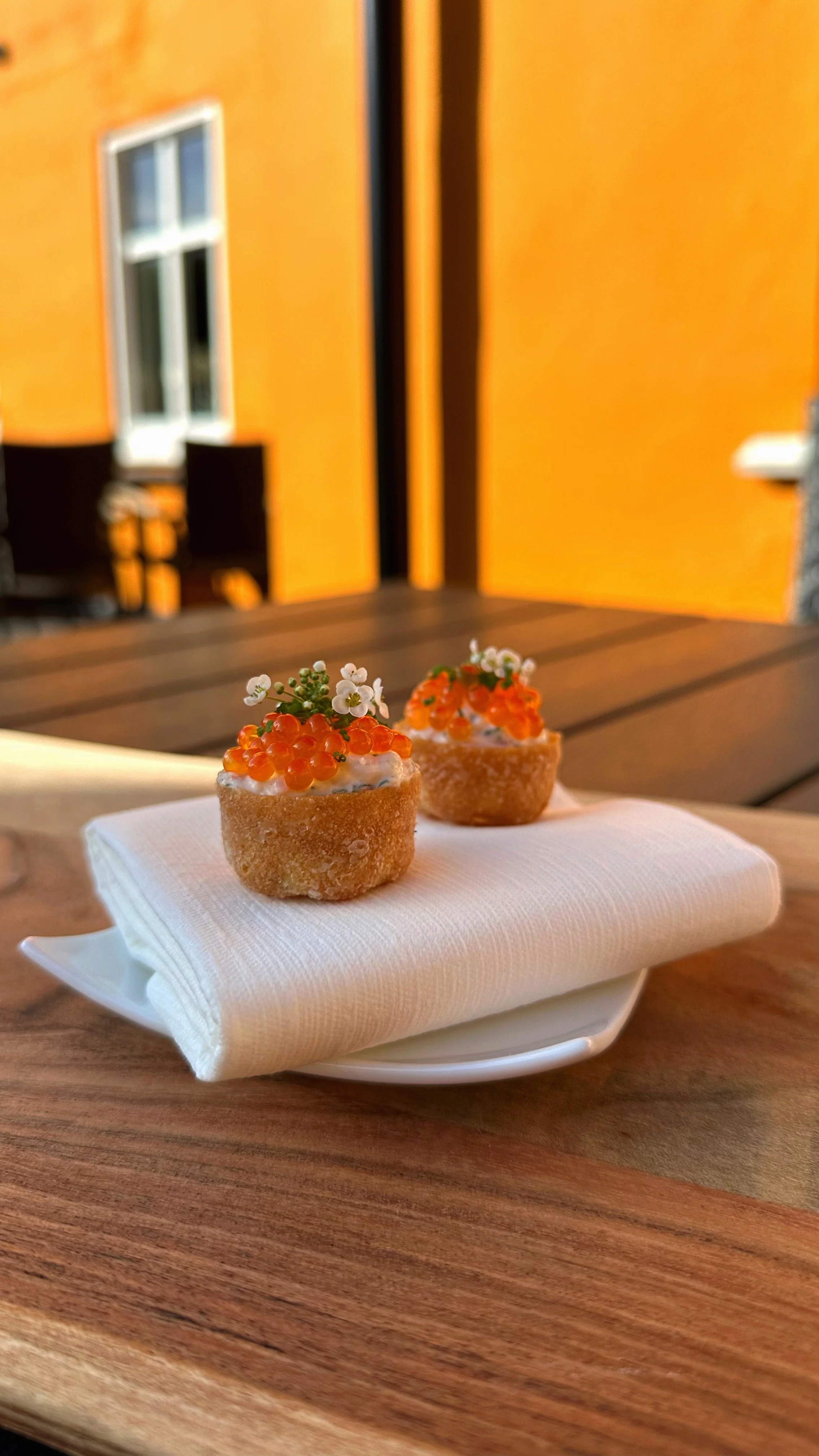 Saltvaffel m. trøffelmayo og iberico-skinke.